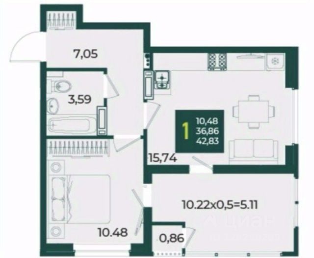 1 собственник, никто не прописан. Чистая продажа. Подходит для ипотеки.