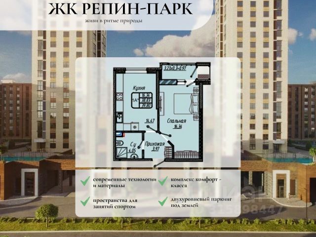 Уникальное предложение в жилом комплексе "Репин Парк"! Комплекс расположен всего в 10 минутах от центра Краснодара, в Фестивальном микрорайоне. Строгое соблюдение сроков и высокое качество строительства - главные преимущества "Репин Парк". Современные технологии и материалы обеспечивают надежность и экологичность зданий. Монолитный железобетон и трехслойные наружные стены обеспечивают прочность и сохраняют тепло. Переменная этажность комплекса от 9 до 18 этажей позволяет получить больше солнечного света для всех уровней квартир с внутренней стороны. Площадь придомовой территории будет оформлена зелеными насаждениями, создавая приватное пространство для отдыха, детских игр и семейного досуга. Во дворе также будут пространства для занятий спортом и воркаутом. Парковка будет предусмотрена на подземном уровне с двухуровневым паркингом для жителей и гостевыми машиноместами. Квартира сдается с уже завершенными черновыми работами, включая коммуникации, стяжку пола, разводку электросетей и теплоснабжения, остекление окон и балконов, установку радиаторов и входных дверей. В ЖК также предусмотрены индивидуальные кладовые помещения. Благодаря удобному расположению, жители "Репин Парк" могут наслаждаться пешей доступностью к крупным сетевым магазинам, фитнес-клубам, школам, детским садам, кафе, ресторанам и остановкам общественного транспорта. Удобная транспортная развязка обеспечивает простой доступ и избавляет от пробок. "Репин Парк" предлагает комфортное расположение, полный спектр социальных и инфраструктурных объектов, современные технологии и уютную атмосферу. Качество, комфорт и доступность - вот то, что делает "Репин Парк" особенным. Звоните нам прямо сейчас! Успейте купить свою счастливую квартиру! 1-комнатная квартира в микрорайоне 9-й километр в городе Краснодар.