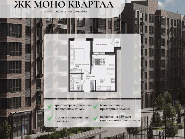 ЖК МОНО Квартал от "ИНСИТИ девелопмент". Это новый среднеэтажный комплекс в духе молодежного клубного квартала. Комфорт, уют и безопасность главное трио проекта, сочетающего развитую инфраструктуру городской среды и камерную атмосферу прогрессивного пригорода. Комплекс состоит из 4-х домов высотой 8 этажей. МОНО Квартал отличают: Дворовая территория без машин с детской и спортивной площадками Вместительный паркинг по внешнему периметру Места для уединенного отдыха Сквозные подъезды для комфортного доступа в уютный холл Отдельные велобоксы во дворе Колясочные в подъездах Видеонаблюдение входных групп, вестибюлей, лифтов, колясочных Эргономичные планировки квартир разных площадей Большие окна и просторные лоджии Привлекательный коммерческий блок с витражами на первых этажах Внутриквартальный сквер для атмосферных прогулок Удобный доступ к остановкам общественного транспорта ЖК МОНО Квартал расположен в перспективном и развивающемся районе, в локации с низкой густотой населения. В ближайшем расположении: Школы (2 сданы и одна на этапе строительства на 1550 мест в смену) Детские сады (2 государственных и несколько частных) Детская и городская поликлиники Продуктовые магазины Торговые центры Спортзалы и фитнес-клубы Заправка Кафе, городской сад Строительный магазин Выезды на Ейское и Ростовское шоссе СК "Город спорта", ТРЦ "Красная площадь" Квартира 45 1-комнатная квартира в микрорайоне Березовый в городе Краснодар.