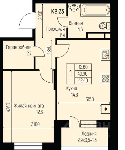 Продаётся 1-комнатная квартира в строящемся доме (Литер 9), срок сдачи: IV-кв. 2025, общей площадью 42.4 кв.м., на 2 этаже. Новый жилой комплекс "Nova Vita" от застройщика МЕТРИКС DEVELOPMENT расположен по адресу Краснодар, посёлок Берёзовый, улица имени А.Н. Лодыгина.