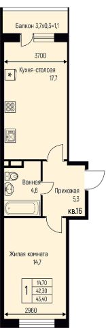 Квартира расположена на 16 этаже 22 этажного дома.