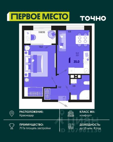 Литер 1, 7 этаж, 282. "Сердце" — это комплекс премиум-класса в самом центре Краснодара. Это проект, в котором городская динамика сочетается с комфортом, привлекательностью и продуманной средой для жизни. Здесь история города и энергия современного мегаполиса соединяются в единой архитектурной концепции. Преимущества жилого комплекса "Сердце". Транспортная доступность: 3 минуты до стадиона "Краснодар". и до парка "Краснодар". 10 минут до ТРЦ "Галерея". 10 минут до исторического центра Краснодара 10 минут. 15 минут до Кубанского государственного университета. Архитектура премиум-класса Архитектура жилого комплекса "Сердце" выполнена с выразительной геометрией и акцентом на статус. Ключевые особенности: Уникальный фасад в стиле неоклассицизма. Высококачественные материалы, гарантирующие прочность и долговечность. Равномерная вечерняя подсветка, подчеркивающая геометрию здания. Внутреннее наполнение: В парадных предусмотрены зоны ожидания с мягкими диванами и креслами, журнальными столиками. Переходные галереи, через которые можно пройти на закрытую территорию двора. Внутренняя инфраструктура 4 панорамных лифта с видом на Краснодар Консьерж-сервис Ресторан и фитнес-зал на 23 этаже Дендрарий во дворе Технологии Территория закрыта для машин Системы безопасности и круглосуточное видеонаблюдение. "Умный Дом". Продам 1-комнатную квартиру в Краснодаре.