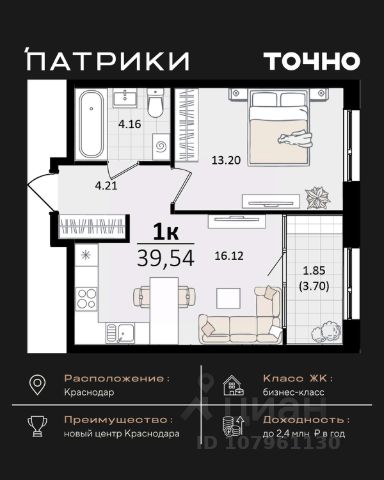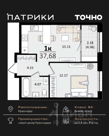 Жилой комплекс представляет собой 9 корпусов высотой от 5 до 18 этажей. В оформлении фасадов используются облицовочный кирпич. Во всех домах выполнена дизайнерская отделка входных групп и установлены современные лифты. В каждом корпусе спроектированы места для хранения колясок и велосипедов, в холле оборудована лапомойка для домашних животных. В проекте представлено множество планировочных решений: в наличии квартиры, как классического типа, так и европланировки. Сдаются они с чистовой отделкой. Высота потолков — от 2,7 до 3 метров. На территории комплекса предусмотрены места для отдыха, аллеи и бульвары, детские и спортивные площадки. На первых этажах расположены коммерческие помещения. Для владельцев автомобилей спроектированы стоянка и отдельный многоуровневый паркинг. ЖК расположен в районе Хлопчато-бумажного комбината. В шаговой доступности готовые объекты социальной и спортивной инфраструктуры города: центры детского творчества, ледовый каток, концертный зал, образовательные учреждения и детские сады, торговые центры, парки, медицинские учреждения. До центра города 20 минут транспортом. 1-комнатная квартира в микрорайоне Хлопчато-бумажный Комбинат в городе Краснодар.