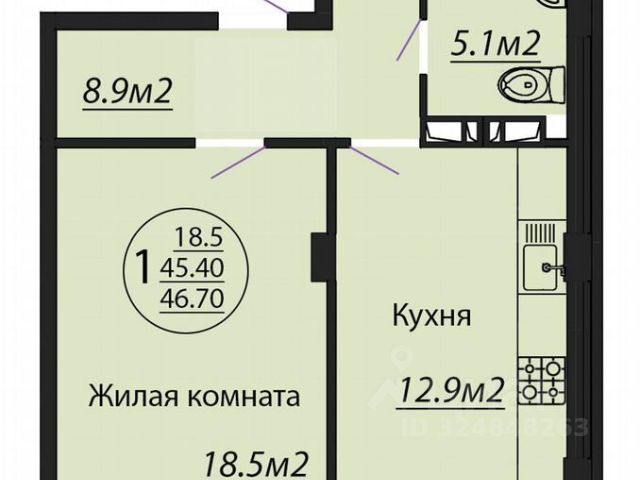 Молодая пара / Покупатель независимости заезд под ключ, светлая кухня-гостиная 14 м², отдельный гардероб.