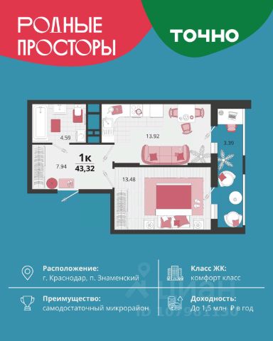 "Родные просторы"- самодостаточный микрорайон, который реализован по принципу комплексного развития территории, где есть вся инфраструктура для комфортной жизни. На территории 41 га 29 домов от 9 до 24 этажей, уютные дворы со спортивными и игровыми площадками, социальные и коммерческие объекты, зеленые массивы и фонтаны. Главная точка притяжения "Родных просторов" - парк семейного отдыха площадью 9 га, 4,5 км прогулочных аллей, амфитеатр для мероприятий, кинофестивальная площадка. Особая гордость микрорайона современная школа на 1550 мест и 3 детских сада "Ладушки", "Веснушки" и "Топотушки" на 880 малышей. В центре микрорайона строятся фитнес-клуб BALANCE с акватермальным комплексом и собственная поликлиника, площадью более 5000 кв.м. Уже открыт православный храм Святых Первоверховных апостолов Петра и Павла.