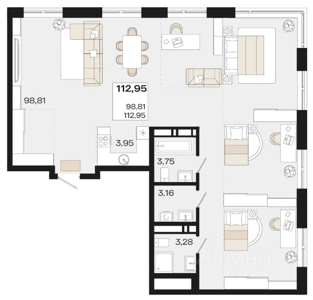 Установлена качественная итальянская кухня, есть электрическая плита, духовой шкаф, посудомоечная машина и фильтры для воды, что особенно удобно для тех, кто много готовит дома.