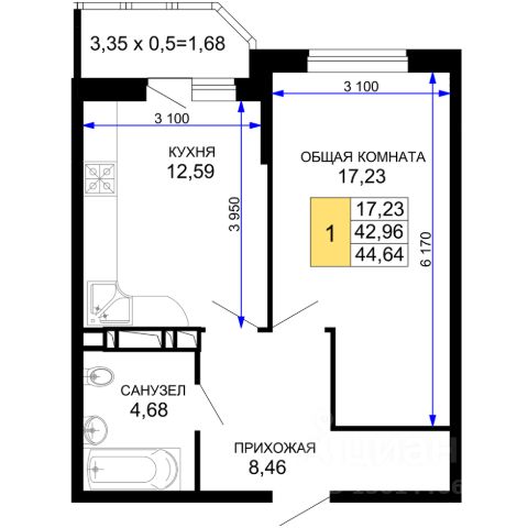В квартире выполнен новый ремонт в светлых тонах. Хорошая планировка с комнатой правильной прямоугольной формы и просторная кухня, с кухонным гарнитуром. Санузел совмещен, установлена новая качественная сантехника.