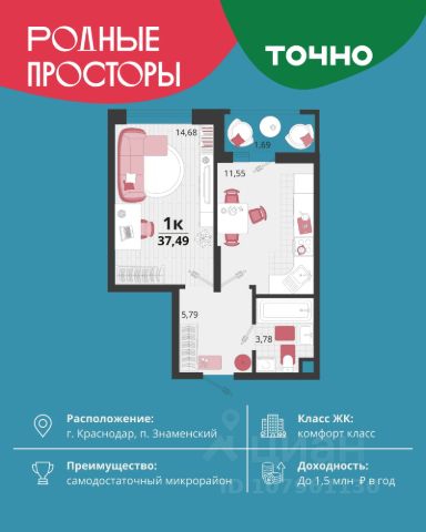 • ✓ Ищете объявления о продаже 1-комнатных квартир в микрорайоне Родные Просторы в поселке Знаменский?