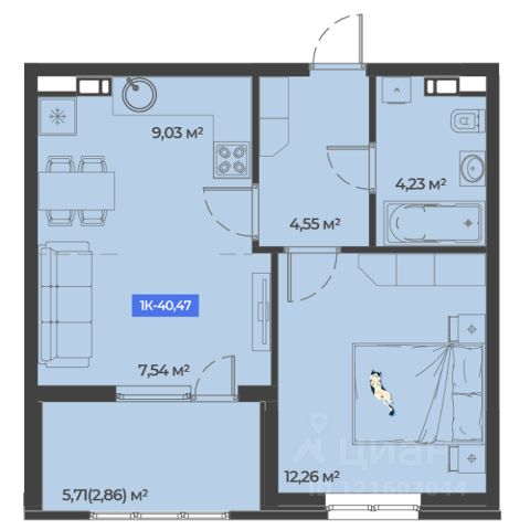 Продаётся 1-комнатная квартира в сданном доме (Литер 2.7), срок сдачи: IV-кв. 2024, общей площадью 34.7 кв.м., на 5 этаже. Расположение, транспортная доступность