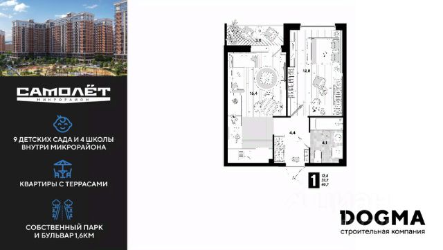 DOGMA - ТОП-3 застройщик по объему строительства в РФ. В продаже 3-комнатная квартира от застройщика! Мкр. "Самолет" 4 очередь, г. Краснодар, Литер 23 Срок сдачи: 2 кв. 2023, общей площадью 91.4 кв.м., на 3 этаже. "САМОЛЁТ" — концептуальный жилой микрорайон, который расположен на северо-западе Краснодара, в районе Западного Обхода. Квартал спроектирован как "город в городе", поэтому здесь будет всё для комфортной жизни: современные дома с разными планировками, дороги, школы и детские сады, поликлиника, торговые центры, парки и аллеи. Микрорайон находится далеко от промышленных предприятий, сочетает удобство городской жизни и экологически благоприятную среду. Инфраструктура нового микрорайона: • Видовые квартиры с панорамным остеклением • Безбарьерная среда • Просторные стильные лобби • Сквозные подъезды • Квартиры с террасами • Улучшенная отделка от застройщика • Подземный паркинг и кладовые • Видеонаблюдение и круглосуточный пост охраны • 9 детских садов • 4 школы в шаговой доступности • Кольцевая велодорожка • Аллея спорта • Собственный пешеходный бульвар 1,6 км • Дубовая аллея • 11 павильонов фудкорта • Светомузыкальный пешеходный фонтан протяжённостью 55 м • Торговые галереи • Храм сорока Севастийских мучеников • Скейт-парк • Детская акваплощадка • Детский городок • Крытая зона для бокса и единоборств • Площадки для выгула собак • 9 остановок городского транспорта • Дороги-дублёры Приобрести квартиру можно одним из способов: -субсидированная семейная ипотека 4,5 % на весь срок -рассрочка до конца строительства -оплата наличными -дистанционная покупка Позвоните сейчас и забронируйте квартиру со скидкой! Продается 1-комнатная квартира в новом доме с большой кухней в Краснодаре.