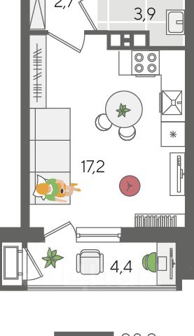 Квартира площадью 24,5 кв.м расположена на 22 этаже и имеет прекрасные видовые характеристики (вид на город, окна выходят на прогулочную зону и сквер)