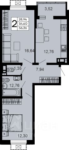 Современная 2-Е планировка: