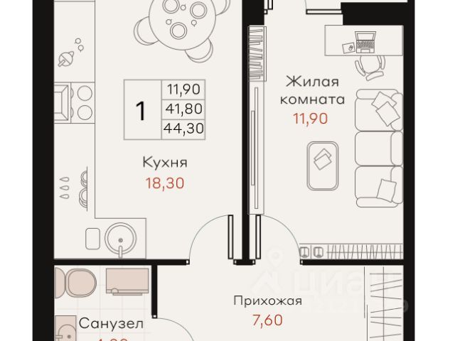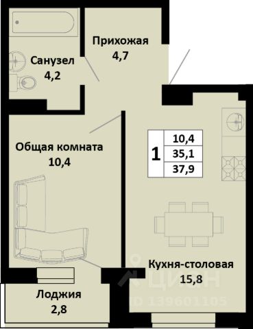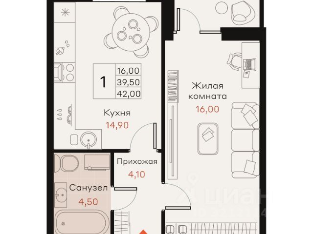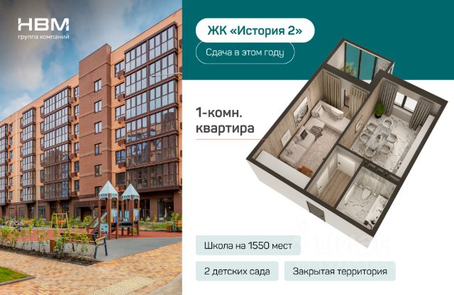 Живите в "Истории 2" — месте, где начинается ваше будущее! 1-комнатная квартира в новостройке в Динском районе Краснодарского края.