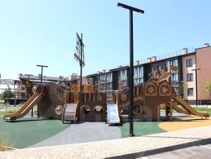 - На территории комплекса будут расположены детские и спортивные площадки, а также амфитеатр, арт-объект и храм.