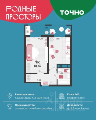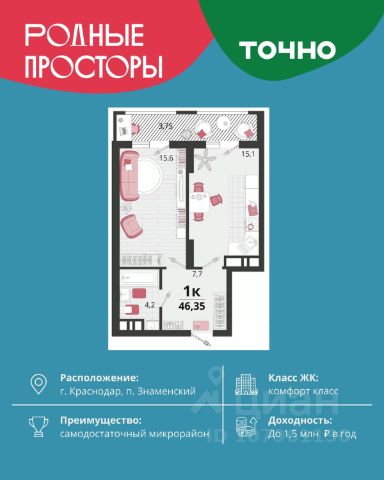 "Родные просторы"- самодостаточный микрорайон, который реализован по принципу комплексного развития территории, где есть вся инфраструктура для комфортной жизни. На территории 41 га 29 домов от 9 до 24 этажей, уютные дворы со спортивными и игровыми площадками, социальные и коммерческие объекты, зеленые массивы и фонтаны. Главная точка притяжения "Родных просторов" - парк семейного отдыха площадью 9 га, 4,5 км прогулочных аллей, амфитеатр для мероприятий, кинофестивальная площадка. Особая гордость микрорайона современная школа на 1550 мест и 3 детских сада "Ладушки", "Веснушки" и "Топотушки" на 880 малышей. В центре микрорайона строятся фитнес-клуб BALANCE с акватермальным комплексом и собственная поликлиника, площадью более 5000 кв.м. Уже открыт православный храм Святых Первоверховных апостолов Петра и Павла.