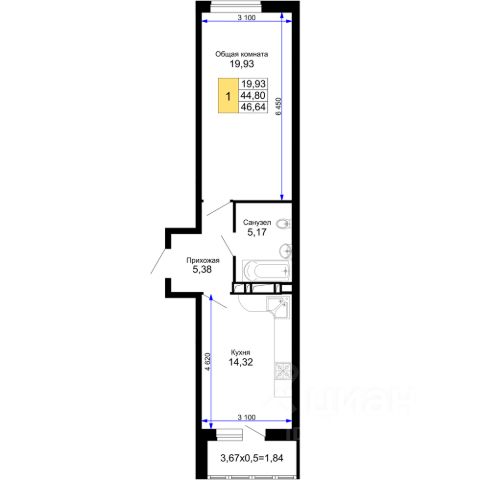 В квартире остается мебель и встроенная техника! Не сделан ремонт в санузле, но можно им полноценно пользоваться.
