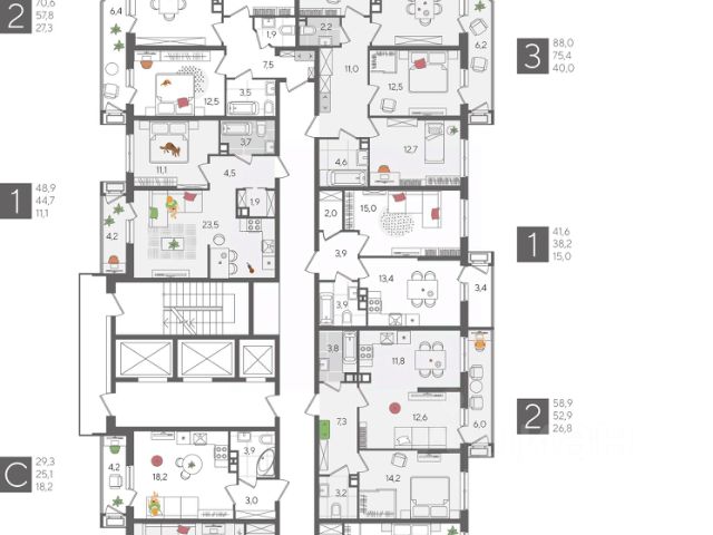 Данный юнит - корпус 1, секция секция3 этаж3 номер58
