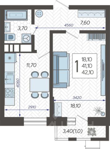 - Система аудиомультирум в каждой квартир - распределение аудио- и видео-сигналов по всей квартире. Для более подробного ознакомления вы можете обратиться в отдел продаж. Продается 1-комнатная квартира от застройщика в Краснодаре.