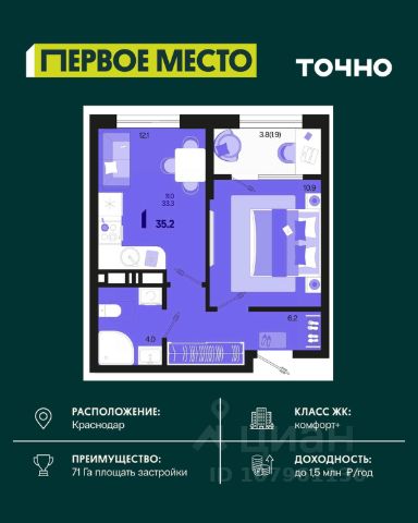 • ✓ В базе Циан 20,7 тыс. 1-комнатных квартир в новостройках в Краснодаре.