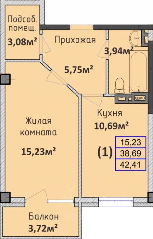 Продаётся 1-комнатная квартира в строящемся доме (Литер 2), срок сдачи: III-кв. 2027, общей площадью 37.53 кв.м., на 8 этаже.