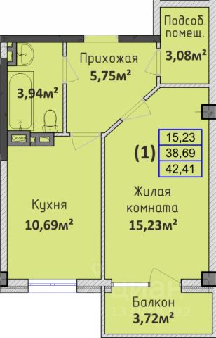 Продаётся 1-комнатная квартира в строящемся доме (Литер 2), срок сдачи: III-кв. 2027, общей площадью 37.44 кв.м., на 3 этаже.
