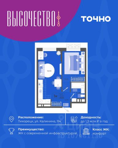 — В жилом комплексе предусмотрены однокомнатные, двухкомнатные, трехкомнатные и четырехкомнатные квартиры площадью от 33,32 м2 до 94,48 м2. Высота потолков — 2,89 м.