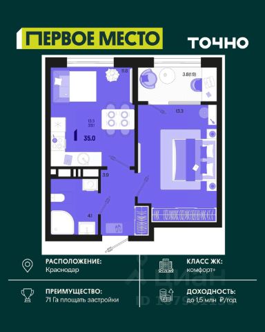 ЖК "Сармат" современный и динамично развивающийся жилой комплекс комфорт класса, расположенный в Краснодаре на улице Западный обход, где уже совсем скоро появится трамвайная линия! Комплекс построен по технологии монолит-кирпич. 2 очередь ЖК "Сармат" это два 16-этажных дома класса комфорт плюс, паркинг и кладовые помещения. Дом сдан! В ЖК есть все для комфортного проживания. Комплексная застройка полностью обеспечена необходимой инфраструктурой: действующие школы и детский сад всего в 30 метрах, магазины, подземный паркинг, кладовки и зелёные зоны для отдыха. ЖК "Сармат" это: Безопасная закрытая территория Амфитеатры Перекрестное видеонаблюдение 24/7 Безбарьерная среда Тенистые перголы Лаунж-зоны Детские и спортивные площадки для разных возрастов Витражное остекление Колясочные и велосипедные помещения Школа и детский сад всего в 30 метрах Скоростные бесшумные лифты и тестовое поле Эргономичная 1-комнатная квартира площадью 38.18 кв.м. на 12 этаже в 4-м подъезде - это оптимальный выбор для тех, кто ценит уют, качество и современный комфорт. Продается 1-комнатная квартира первичка в Краснодаре.