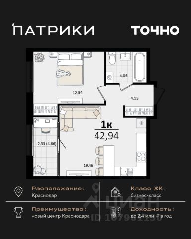 Жилой район бизнес-класса "Патрики" находится в новом центре Краснодара. Это комплекс из 10 домов переменной этажности, гармонично расположенных на территории 28,5 га. Концепция "город в городе" превращает "Патрики" в место, из которого не нужно уезжать, потому что здесь есть все для комфортной жизни и отдыха: просторные прогулочные аллеи и зеленая парковая зона, 3 детских сада и 2 школы, включая частную, гранд-аллея с ресторанами, бутиками, фонтанами и атмосферой европейских столиц, уникальные арт объекты и ландшафтный дизайн, создающие неповторимый облик района Креативный кластер "Цех" — сердце деловой и культурной жизни "Патриков": коворкинг, фудкорт, авторские магазины, детский комплекс, лектории, фитнес-клуб "Баланс" с волной для сёрфа, — здесь рождаются идеи, бизнесы и яркие события. На территории сохранены две башни легендарного завода "Сельмаш" — теперь это арт-объекты Мастер и Маргарита, ставшие символом соединения прошлого и будущего. Микрорайон "Патрики" — это проект не только для жизни и отдыха, но и для выгодных вложений. Выбирайте "Патрики" и получайте доход от инвестиций до 2,4 млн рублей в год.*