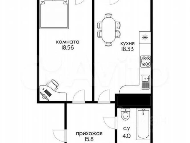 В квартире выполнен новый ремонт в светлых тонах. Хорошая планировка с комнатой правильной прямоугольной формы и просторной кухней. Санузел совмещен, установлена новая качественная сантехника. С кухни есть выход на застекленную лоджию.