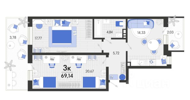 Квартира находится в перспективном, развивающемся районе Тихорецка - теплого южного города. Вокруг очень много зелени и чистый воздух. В шаговой доступности от ЖК Тихорецк - 3 школы, 2 детских сада, магазины Магнит и Пятерочка, пункты выдачи интернет-заказов. Недалеко от дома - парк и зелёная роща. Совсем рядом расположился Ледовый Дворец - гордость Тихорецка. Все, что нужно для комфортного проживания, находится в 5 минутах от дома! До центра города можно добраться на машине или общественном транспорте за 10 минут. Кстати, остановки общественного транспорта тоже находятся в шаговой доступности.