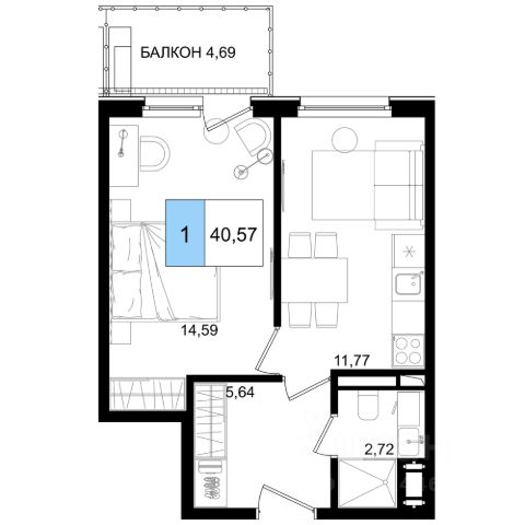 Литер 9.1, 3 этаж, 20. -------------------- Продажа квартира в новостройке, Краснодарский край, муниципальный округ Анапа, хутор Нижняя Гостагайка, улица Николая Лебедева --------------------
