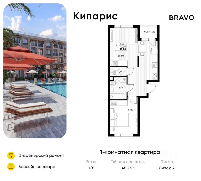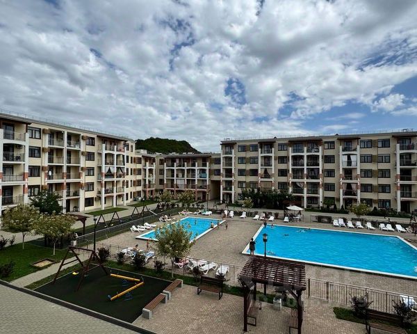 Комплекс находится в сердце села Сукко, на черноморском побережье. Здесь действуют 6 открытых бассейнов, на два из которых имеется выход прямо с данной квартиры, это значит, что в летний период Вы можете насладиться утренним купанием в тишине, а вечером весело провести время у бассейна в компании друзей. Территорию рядом со входом можно оградить, посадить деревья на Ваш вкус, поставить лежаки и наслаждаться отдыхом рядом с бассейном.