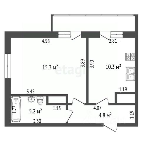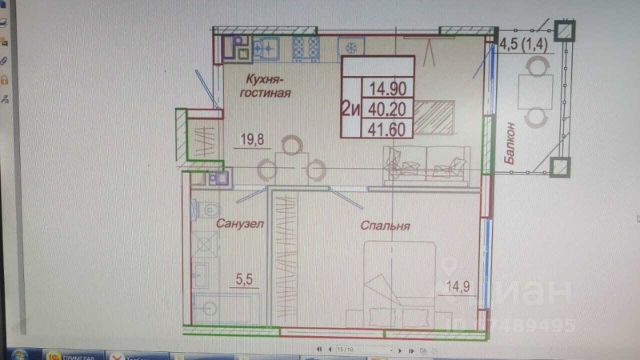 Общая площадь по кадастру 32,5 м2, балкон учтен как 1,3 м2, по факту 4,3 м2, фактическая площадь квартиры 35,1 м2.