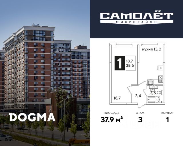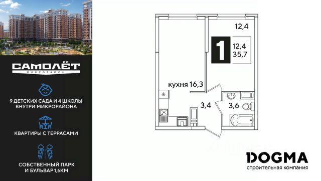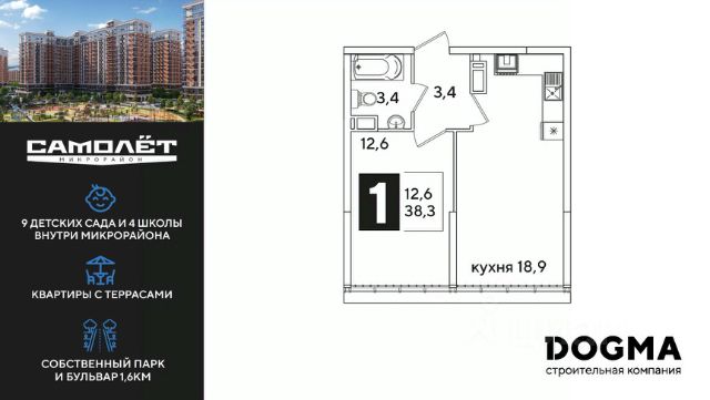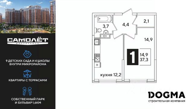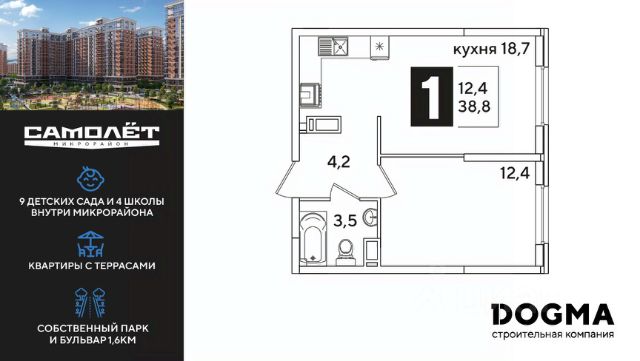 DOGMA - ТОП-3 застройщик по объему строительства в РФ. В продаже 1-комнатная квартира от застройщика! Мкр. "Самолет" 4 очередь, г. Краснодар, Литер 23 Срок сдачи: 2 кв. 2023, общей площадью 40.7 кв.м., на 2 этаже. "САМОЛЁТ" — концептуальный жилой микрорайон, который расположен на северо-западе Краснодара, в районе Западного Обхода. Квартал спроектирован как "город в городе", поэтому здесь будет всё для комфортной жизни: современные дома с разными планировками, дороги, школы и детские сады, поликлиника, торговые центры, парки и аллеи. Микрорайон находится далеко от промышленных предприятий, сочетает удобство городской жизни и экологически благоприятную среду. Инфраструктура нового микрорайона: • Видовые квартиры с панорамным остеклением • Безбарьерная среда • Просторные стильные лобби • Сквозные подъезды • Квартиры с террасами • Улучшенная отделка от застройщика • Подземный паркинг и кладовые • Видеонаблюдение и круглосуточный пост охраны • 9 детских садов • 4 школы в шаговой доступности • Кольцевая велодорожка • Аллея спорта • Собственный пешеходный бульвар 1,6 км • Дубовая аллея • 11 павильонов фудкорта • Светомузыкальный пешеходный фонтан протяжённостью 55 м • Торговые галереи • Храм сорока Севастийских мучеников • Скейт-парк • Детская акваплощадка • Детский городок • Крытая зона для бокса и единоборств • Площадки для выгула собак • 9 остановок городского транспорта • Дороги-дублёры Приобрести квартиру можно одним из способов: -субсидированная семейная ипотека 4,5 % на весь срок -рассрочка до конца строительства -оплата наличными -дистанционная покупка Позвоните сейчас и забронируйте квартиру со скидкой!