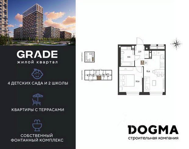 В продаже 1-комнатная квартира от застройщика! ЖК GRADE г. Краснодар, Литер 15 Срок сдачи: 4 кв. 2027, общей площадью 31.3 кв.м., на 7 этаже. GRADE от DOGMA: квартал бизнес-класса. Никогда неоклассика не была представлена в краснодарской архитектуре с таким характером. Пока не появился GRADE, неоклассический квартал, объединяющий строгие формы и величие с прогрессивными технологиями и лаконичностью современного дизайна. Жить в GRADE — значит чувствовать статус, наслаждаться свободой и управлять своим временем. Квартал с переменной этажностью 9, 16 и 18 этажей предлагает полную инфраструктуру для жизни: 4 детских сада, 2 школы, поликлиника и ФОК расположены в шаговой доступности. Ваши привилегии в GRADE: Архитектура в стиле неоклассицизм. Гранд-лобби с панорамными окнами, мягкой мебелью и выдержанной палитрой. Закрытый клуб с консьерж-сервисом: Детский клуб; Кинотеатр на 20 мест; Фитнес-рум. Благоустройство: Парк с фонтаном и амфитеатром, эко-площадки, зоны отдыха, спортивные площадки. Коммерция на первых этажах с площадками для бизнеса. Технологии "Умный дом": Управление через смартфон; Бесключевой доступ по BLE-технологии; Круглосуточное видеонаблюдение; Бесшовный Wi-Fi по всей территории; Интеллектуальные счетчики. Многоуровневый подземный паркинг с видеонаблюдением, прямым доступом на скоростном лифте и электрозарядками. Дополнительные удобства: Колясочные, велобоксы, кладовые помещения, скоростные лифты. Приобрести квартиру можно одним из способов: Семейная ипотека. Рассрочка. Оплата наличными. Дистанционная покупка. Позвоните сейчас и узнайте больше о возможностях приобретения квартиры бизнес-класса в ЖК GRADE!
