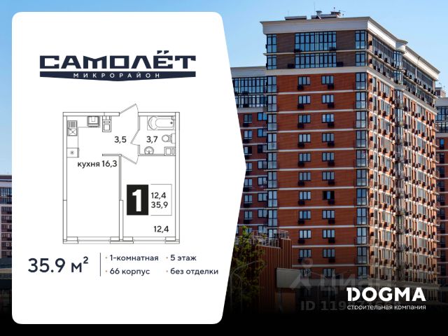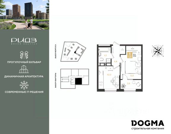 Продаётся 1-комнатная квартира в строящемся доме (Литер 10), срок сдачи: II-кв. 2026, общей площадью 36.89 кв.м., на 20 этаже. Расположение, транспортная доступность