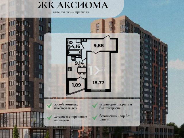 Жилой комплекс "Аксиома" — современный проект, который расположен в районе Западного обхода города Краснодара. ЖК представляет собой 2 литера комфорт класса, в каждом из которых 5 секций. Объект возводится по технологии кирпично-монолитного строительства с фасадами из облицовочного кирпича благородного терракотового и коричневого цвета. Территория комплекса закрыта и благоустроена, здесь организованы пространства для жителей всех возрастов. Аллеи для прогулок, спортивные и детские площадки. Организован безопасный двор без машин, установлено видеонаблюдение и предусмотрен консьерж-сервис. На 1 этаже предусмотрены коммерческие помещения, на втором этаже помещения для офисов. Это уникальный ЖК, в котором можно найти планировку на любой вкус. Квартира сдается в качественной предчистовой отделке. Есть возможность дополнительно заказать от застройщика ремонт в светлых или темных тонах. Жилой комплекс "Аксиома" расположен в районе с хорошо развитой инфраструктурой — в пешей доступности имеется все необходимое: продовольственные магазины, 2 детских сада, школа в 2 минутах ходьбы, аптеки, кафе и рестораны, салоны красоты, супермаркеты и рынок. Остановки общественного транспорта также расположены в 3 минутах ходьбы от жилого комплекса. В ближайшем будущем здесь будет проходить и трамвайная линия. Если вы думаете где купить квартиру и жить с максимальным комфортом, даже не выезжая из своего района, то жилой комплекс "Аксиома" - это правильный и отличный выбор!