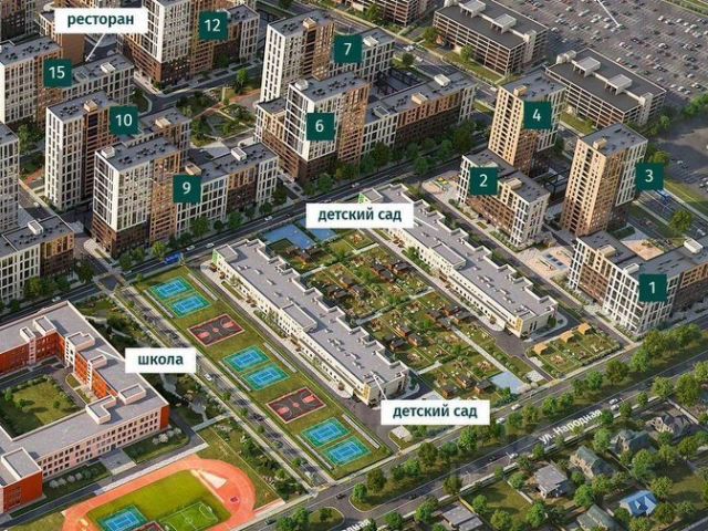 Жилой район "Народные кварталы" Комфортный мир, где каждая деталь создана для удобства и гармонии. Что порадует в домах: Дизайнерские входные группы с просторными колясочными и велосипедными — все для комфорта с первого шага. Монолитно-кирпичная технология строительства гарантирует тепло, надежность и долговечность. Высота потолков до 3,9 м наполняет пространство светом и воздухом, создавая ощущение свободы. Предчистовая отделка избавит от пыльных и шумных работ — вы сможете сразу же начать обустраивать свой новый дом по своему вкусу. Первые этажи предназначены для коммерческой недвижимости, что обеспечивает удобство и доступность всех необходимых услуг. О придомовой территории: Просторные пешеходные зоны, пандусы и гостевые парковочные места создают комфортную среду для прогулок и отдыха всей семьи. Закрытая охраняемая территория с видеонаблюдением обеспечит вам полное спокойствие и безопасность. Многоуровневый паркинг на 5000+ машиномест — забудьте о проблемах с парковкой! Детские и спортивные площадки, зеленый бульвар — идеальное место для активного отдыха и общения с соседями. Три детских сада по 350 мест и школа на 1550 мест — все для удобства ваших детей. Более 18 000 м² пространства для занятий спортом: футбол, баскетбол или теннис — выберите то, что вам по душе! Все необходимое — на расстоянии вытянутой руки: ТРЦ "Красная Площадь", "Метро", "Стрелочка" — шопинг и развлечения для всей семьи. Супермаркеты, аптеки, рестораны и остановки общественного транспорта — все для вашего комфорта. Прямая продажа от застройщика. Живите там, где удобно, где уютно и где всегда рядом все, что нужно для жизни. Выбирайте ЖР "Народные кварталы".
