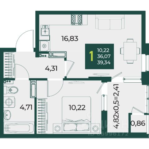 2-комнатная, 11 этаж