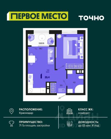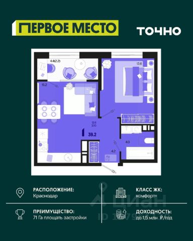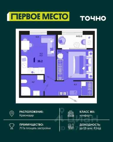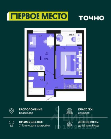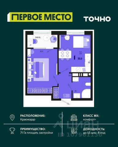 Жилой район "Первое место"- один из самых масштабных проектов в России. На территории 71 га 18 кварталов, 31 дом переменной этажности от 8 до 18 этажей, собственный парк 9 га, храмовый комплекс, пешеходный бульвар "Круг семьи", детские и спортивные площадки, мангальные зоны и различные локации для отдыха. В шаговой доступности действующие муниципальные образовательные учреждения: школа на 1 100 мест и детский сад на 250 мест. Помимо этого, в жилом районе "Первое место" построятся школа на 1700 мест с крытым 25-метровым бассейном и 5 детских садов на 1 490 мест. На первых этажах многоуровневых парковок "паркхабов" разместится более 61 тыс м2 коммерческих помещений. Жителям будут доступны собственный фитнес-центр, кафе, рестораны и магазины. В каждом подъезде предусмотрены дизайнерские холлы в стиле лобби отелей, консьерж-сервис, лапомойки, отдельные колясочные и велосипедные. Также в домах будут просторные кладовые помещения и комнаты для хранения почты с почтоматами для получения посылок из маркетплейсов.