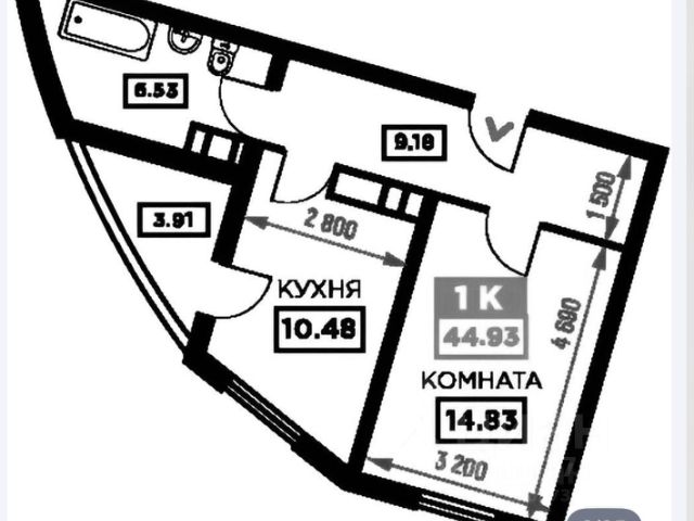 Общая площадь 31,6 м2, жилая площадь 11,9 м2, кухня 6,6 м2, санузел 3,8 м2, прихожая 7,0 м2, застекленная лоджия 2,3 м2.