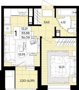 Продаётся 1-комнатная квартира в сданном доме (Литер 2.7), срок сдачи: IV-кв. 2024, общей площадью 32.7 кв.м., на 6 этаже. Расположение, транспортная доступность