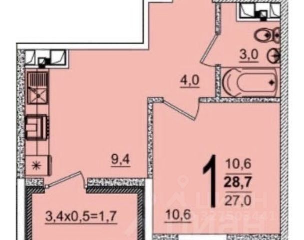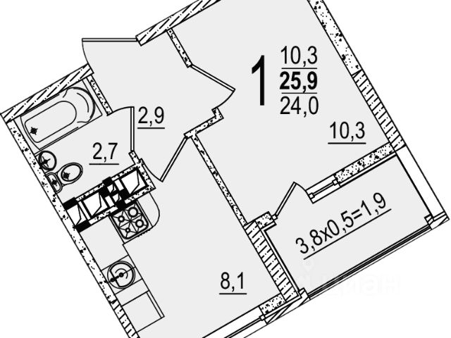 Общая площадь: 31 м² — всего 24,3 м² жилой + 6,6 м² лоджия!