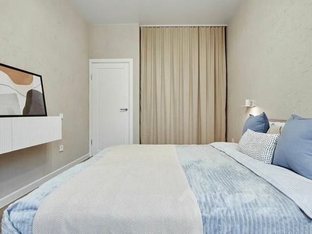 Современное дизайнерское решение выполнено в светлых тонах, со умиротворяющими голубыми акцентами. Это уютная квартира для комфортной жизни, созданная с любовью и вниманием к деталям.