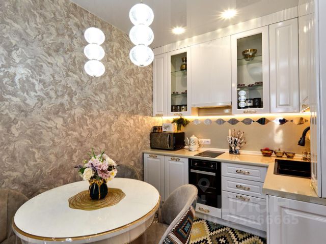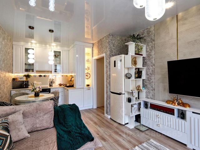 Коридор, кухня - плитка на полу, в комнатах хороший ламинат, качественные обои, в комнатах натяжные потолки (кроме кухни). Межкомнатные двери из массива дерева (Беларусь).