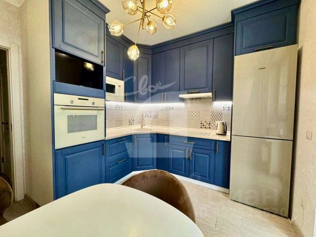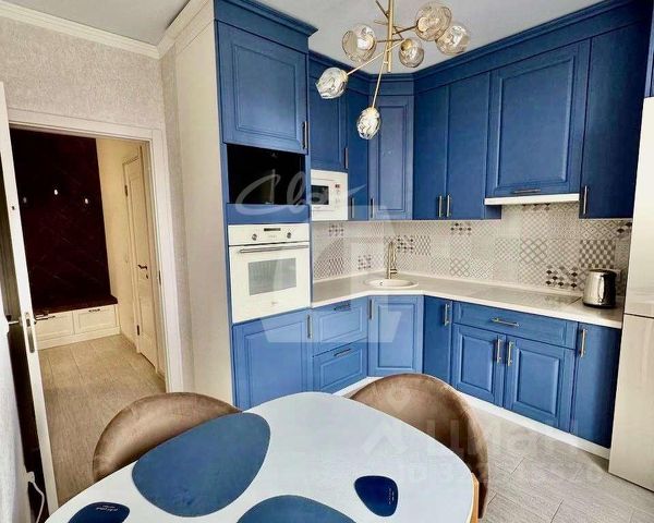 Кухня оборудована мебелью и техникой. Остается - встроенная кухня, бытовая техника: электрическая плита, духовой шкаф, холодильник, обеденный стол с мягкими стульями, диван, в спальне. Вся техника и мебель в хорошем состоянии. В спальне двуспальная кровать, диван, телевизор. В ванной комнате вся сантехника, ванна, раковина с гарнитуром, большое зеркало.