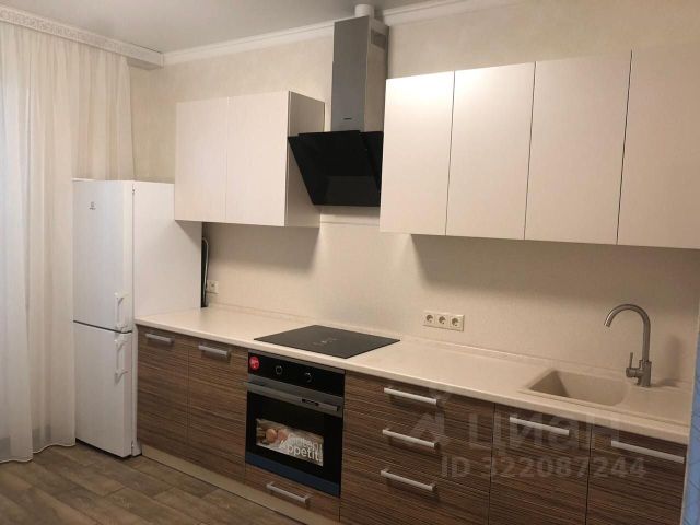 В квартире выполнен ремонт в светлых и спокойных тонах. Хорошая планировка с комнатой правильной прямоугольной формы и просторной кухней, в которой уже установлен кухонный гарнитур. Санузел совмещен, установлена новая качественная сантехника. С кухни есть выход на застекленную лоджию.