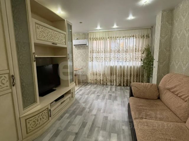 В квартире выполнен хороший и удобный ремонт: продуманное зонирование студийного пространства, что позволяет комфортно разместить зону отдыха, гостиную и кухню.