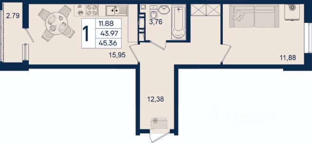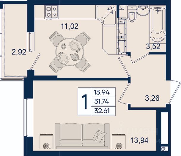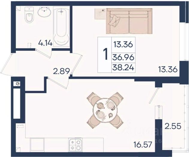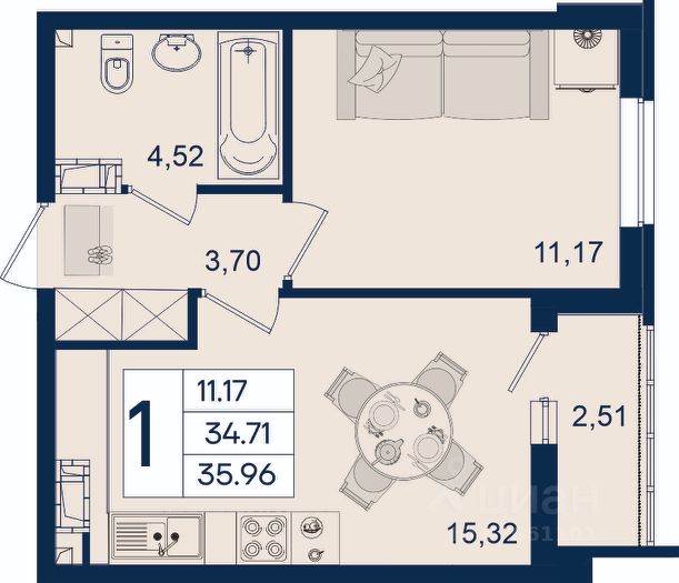 1 комнатная квартира с ремонтом 40.54 м², на 7 этаже в жилом комплексе "Дом 101". ЖК Дом 101 - это уникальное пространство на территории 101 га. Парк 20 га с спортивными площадками и амфитеатром. Школа на 1725 мест и пять детских садов. Благоустроенные дворовые территории с детскими площадками и зонами отдыха создают комфортную среду для семей. 3693