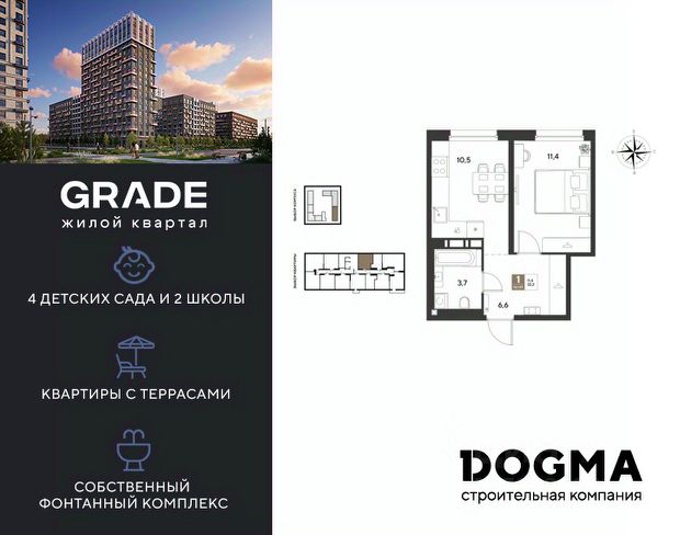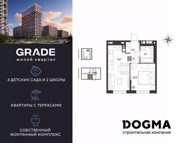 В продаже 1-комнатная квартира от застройщика! ЖК GRADE г. Краснодар, Литер 15 Срок сдачи: 4 кв. 2027, общей площадью 32.2 кв.м., на 5 этаже. GRADE от DOGMA: квартал бизнес-класса. Никогда неоклассика не была представлена в краснодарской архитектуре с таким характером. Пока не появился GRADE, неоклассический квартал, объединяющий строгие формы и величие с прогрессивными технологиями и лаконичностью современного дизайна. Жить в GRADE — значит чувствовать статус, наслаждаться свободой и управлять своим временем. Квартал с переменной этажностью 9, 16 и 18 этажей предлагает полную инфраструктуру для жизни: 4 детских сада, 2 школы, поликлиника и ФОК расположены в шаговой доступности. Ваши привилегии в GRADE: Архитектура в стиле неоклассицизм. Гранд-лобби с панорамными окнами, мягкой мебелью и выдержанной палитрой. Закрытый клуб с консьерж-сервисом: Детский клуб; Кинотеатр на 20 мест; Фитнес-рум. Благоустройство: Парк с фонтаном и амфитеатром, эко-площадки, зоны отдыха, спортивные площадки. Коммерция на первых этажах с площадками для бизнеса. Технологии "Умный дом": Управление через смартфон; Бесключевой доступ по BLE-технологии; Круглосуточное видеонаблюдение; Бесшовный Wi-Fi по всей территории; Интеллектуальные счетчики. Многоуровневый подземный паркинг с видеонаблюдением, прямым доступом на скоростном лифте и электрозарядками. Дополнительные удобства: Колясочные, велобоксы, кладовые помещения, скоростные лифты. Приобрести квартиру можно одним из способов: Семейная ипотека. Рассрочка. Оплата наличными. Дистанционная покупка. Позвоните сейчас и узнайте больше о возможностях приобретения квартиры бизнес-класса в ЖК GRADE!